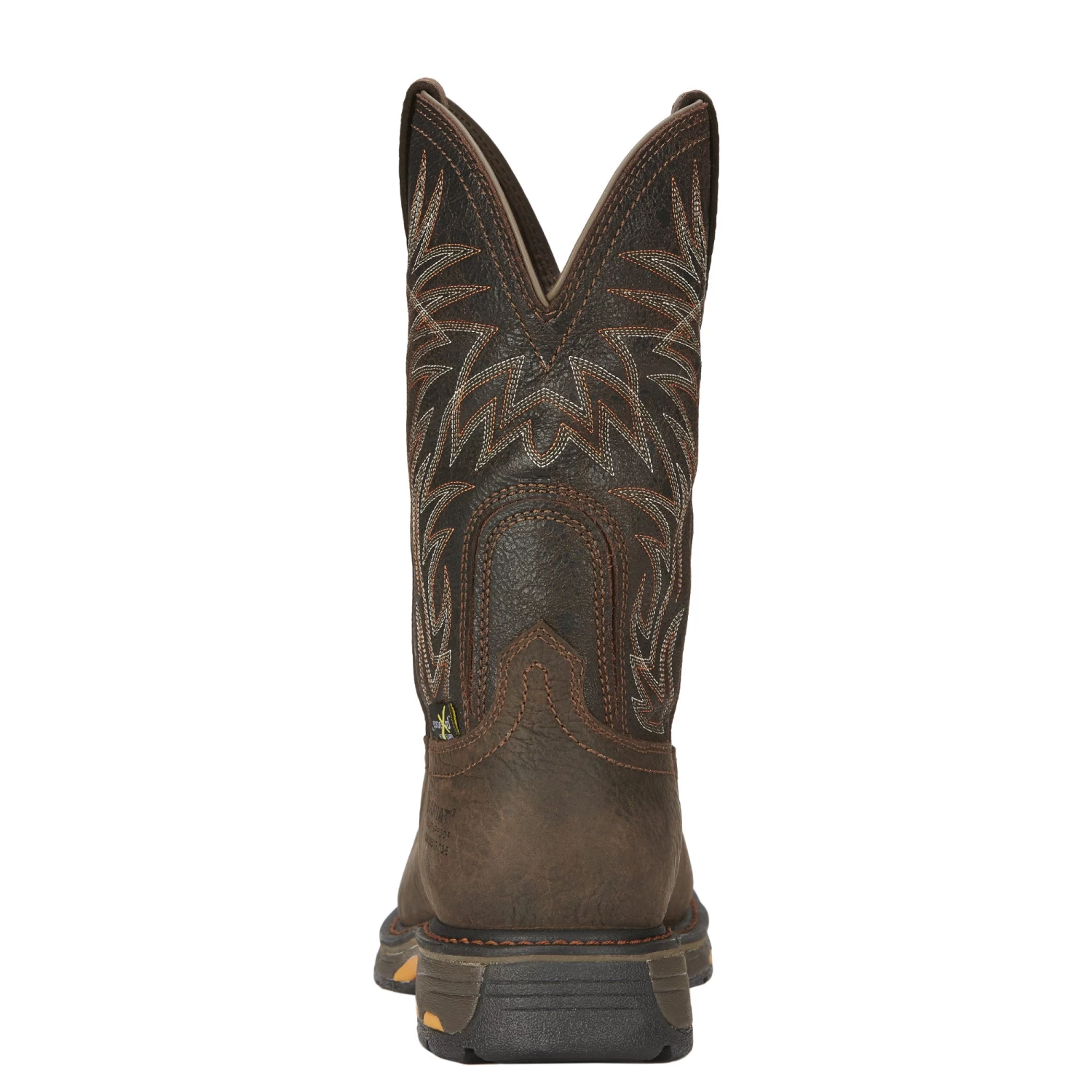 With 11 inches in height you have plenty of ankle protection with these met guard boots. The western style would easily fool any dinner date, so who would ever know that you didn’t change your work boots before meeting up. The rugged look is a perfect complement for the features on the composite safety toe boots: Durable leather protects your men’s footwear from abrasions and hazards found in outdoor work environments, and Ariat’s own Waterproof PRO technology keeps your feet protected from the hazards as well. You can end your day with your feet feeling as comfortable and dry as when you started with these pull-on work boots. The classic western design on the uppers gives this pair a cowboy flair while the cutaway style top and leather finger pulls make them easy to get on and off.