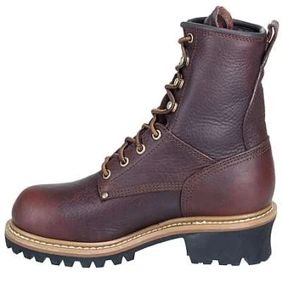 The 8-inch uppers of these Carolina boots are made with dark brown soggy leather material. The rich, brown leather is called soggy as a way to define the color tone; soggy leather has all the natural durability and flexibility you expect from your leather stuff. Leather has natural moisture-resistance, so the word “soggy” won’t even apply. Logger laces go all the way up the design of these steel toe boots, so you can customize the fit.