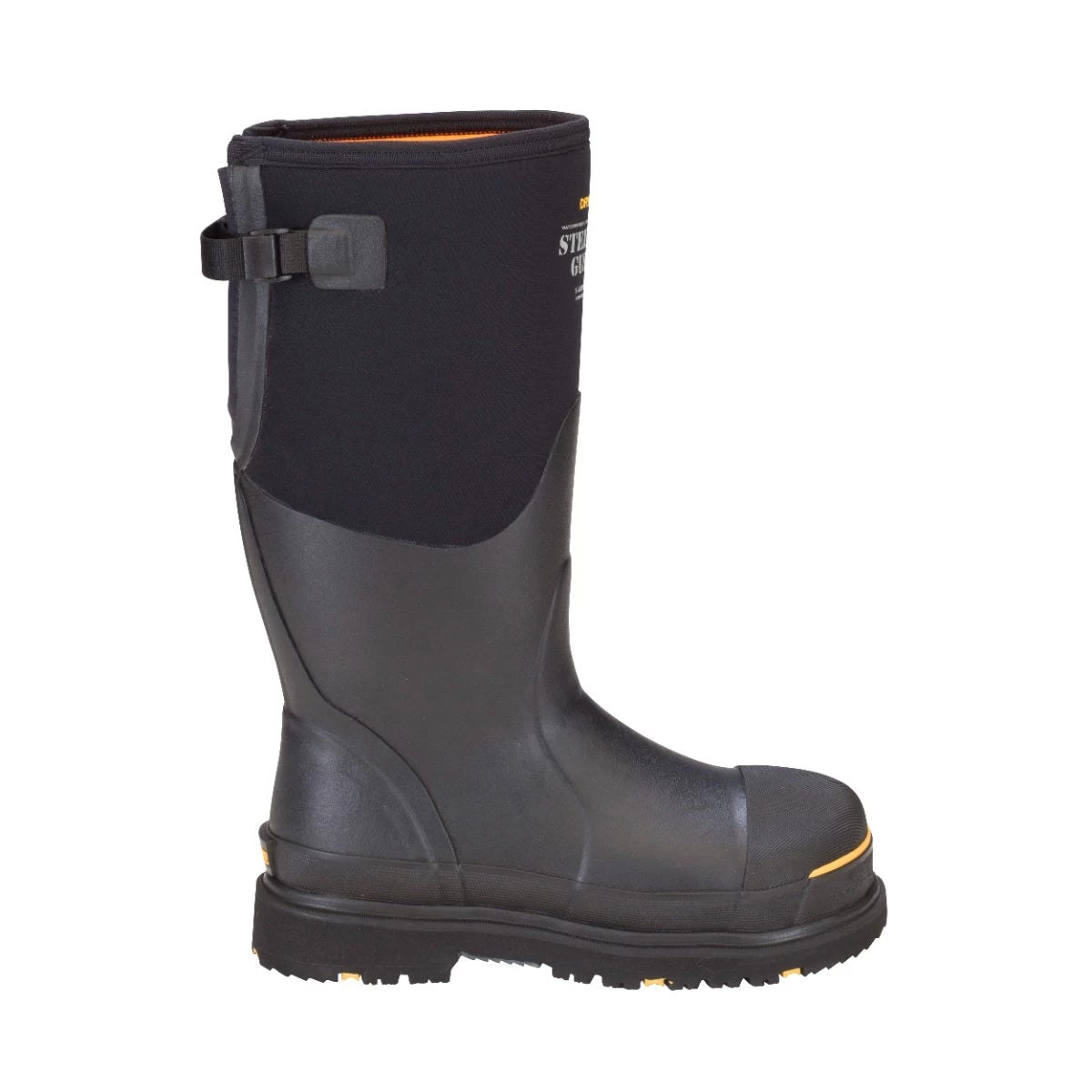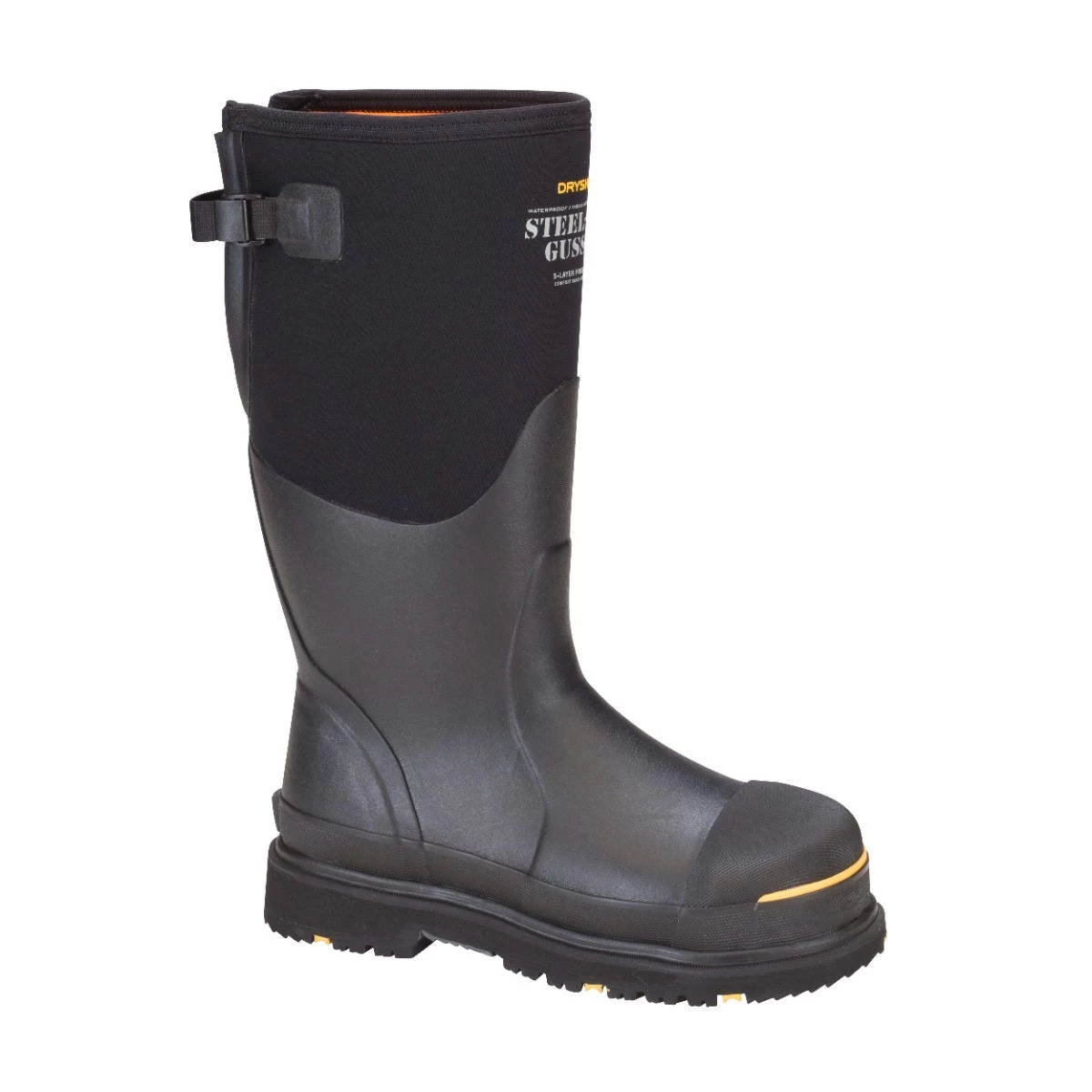Safety matters! Steel-toe protection and all-day comfort! Adjustable gusset style for big calf comfort.