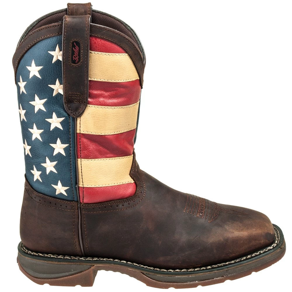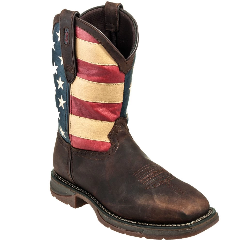 She’s a grand old flag, she’s a boot-scootin’ flag! Wait. Those aren’t the words. But you might be singing them to yourself the moment you pull on a pair of these ~Durango DB020 Men’s Rebel Steel Toe American Flag Cowboy Boots. Hope you have a good singing voice. If not, maybe just hum.