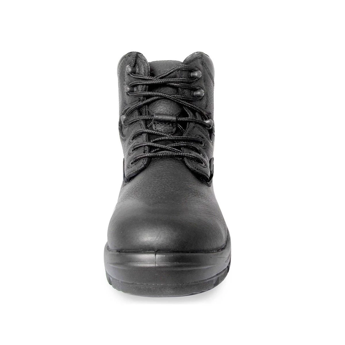 In addition to their safety and comfort features, we have to admit these are also stylish, with a sleek black design that complements just about any work outfit. The water-resistant slip-resistant boots have a lace-up closure system that allows for a customized fit, while the metal hooks and eyelets ensure a secure fit and durability.