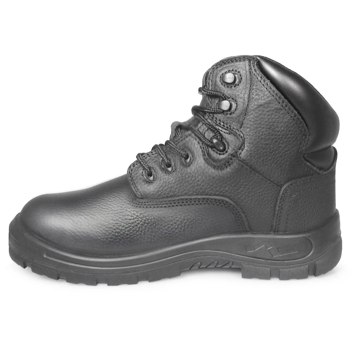 The black met guard boots are slip-resistant, with an innovative Genuine Grip slip-resistant rubber outsole that meets ASTM F1677-96 Mark II standard. The rubber outsole is designed to provide superior traction on slippery surfaces, keeping workers safe and secure on the job.