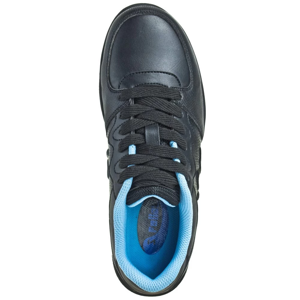 These women’s shoes are designed for challenging work environments, like manufacturing facilities or warehouses. They’re great for casual exercise, too, or really for anything that has you on your feet for longer than you’d like. The durable uppers are made from quality material that’s super lightweight and flexible, so they won’t weigh you down. Their black color contrasts with the blue lining and the included blue shoelaces, too.