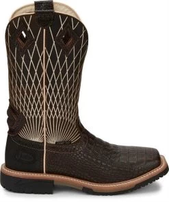 When most people think of work footwear, they don’t think of cowboy footwear. But then again, these ~Justin Men’s SE4661 Brown Stampede Steel Toe EH Boots aren’t your typical cowboy boots.
