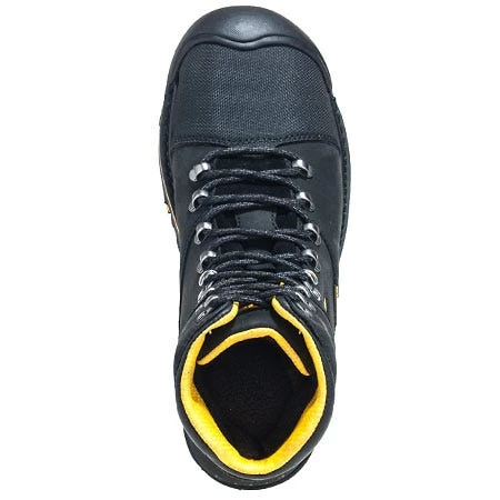 Bold yellow accents brighten up the black leather used to make the distinctive uppers of these KEEN Utility boots. The full-grain leather of these Milwaukee boots is durable stuff, made for flexibility and hard-wearing strength. It’s also waterproof, and capable of keeping you dry even in ugly and uncomfortable weather conditions. Full-grain is a tough material with the unique ability to stay soft and flexible around your feet, even when it’s wet while wearing these safety toe boots.