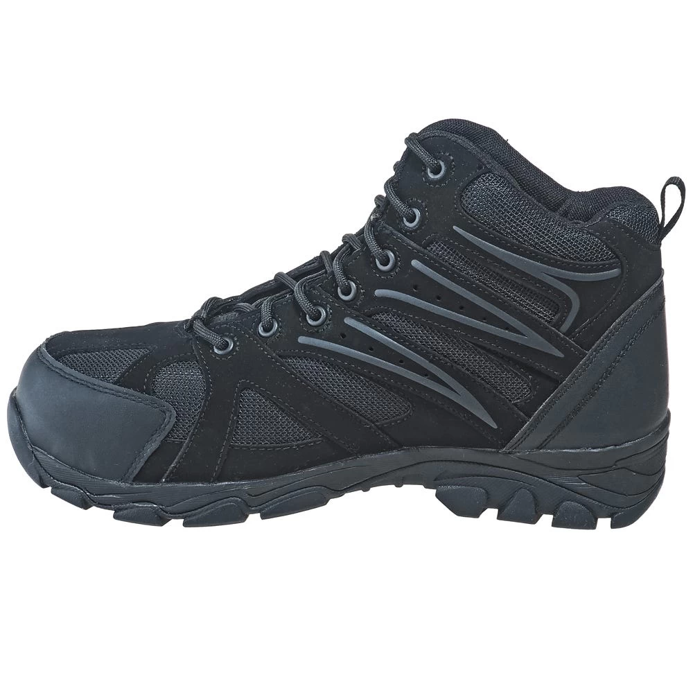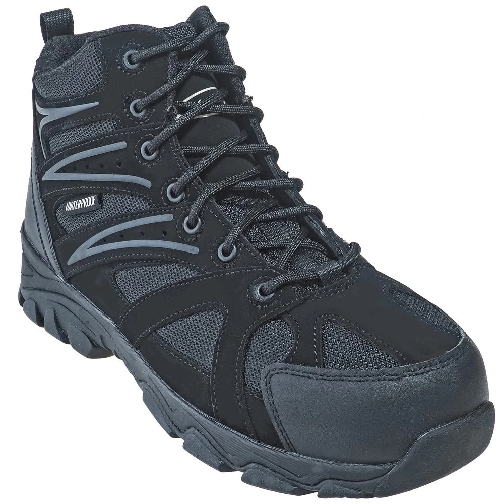 The men’s boots have composite toe caps, and these will guard your toes against heavy rolling or falling objects that could cause an awful lot of pain. With black leather and mesh uppers, you’ll have plenty of durable coverage right from the start. Inside the men’s boots, there’s a nylon mesh lining, as well as waterproof membranes. Your feet will have total waterproof protection, and the nylon mesh adds breathability. Removable EVA cushion inserts on the interiors of the composite toe boots have sponge rubber heel wedges for extra support and comfort.