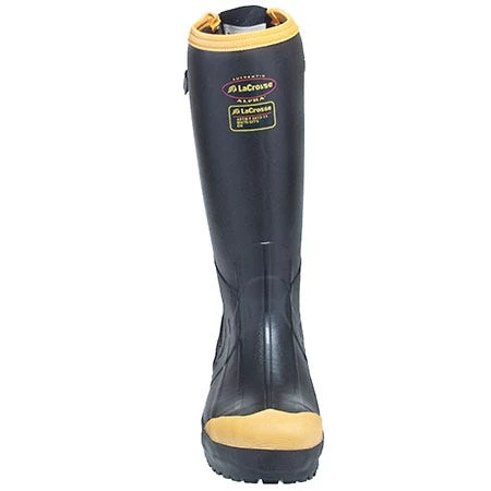 Take an aggressive stance against a dangerous workplace, and wear these ~LaCrosse Men’s 426050 Black 16 Inch Waterproof Non-Metallic Insulated Safety Toe EH Alpha Rubber Boots. Order your pair online from the Working Person’s today.