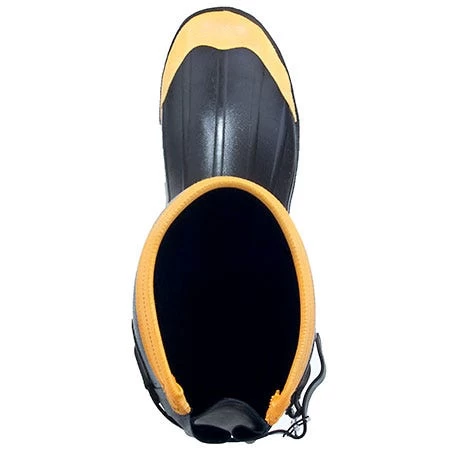 The rubber uppers of these black shoes have been tested for resistance against 25 industry chemicals, and meet ASTM F903 Procedure A testing standards. The rubber uppers are resistant to a variety of hazardous chemicals, including acetone, Clorox, diesel, gas, hydrochloric acid, hydrogen peroxide, and sulfuric acid. They’re also ozone-resistant and abrasion-resistant. Inside of these shoes, lightweight Thinsulate protects your feet. This thin Thinsulate material, 800 gram weight, can keep you warm even in freezing conditions when you’re working. It absorbs your body heat and reflects it back to you.