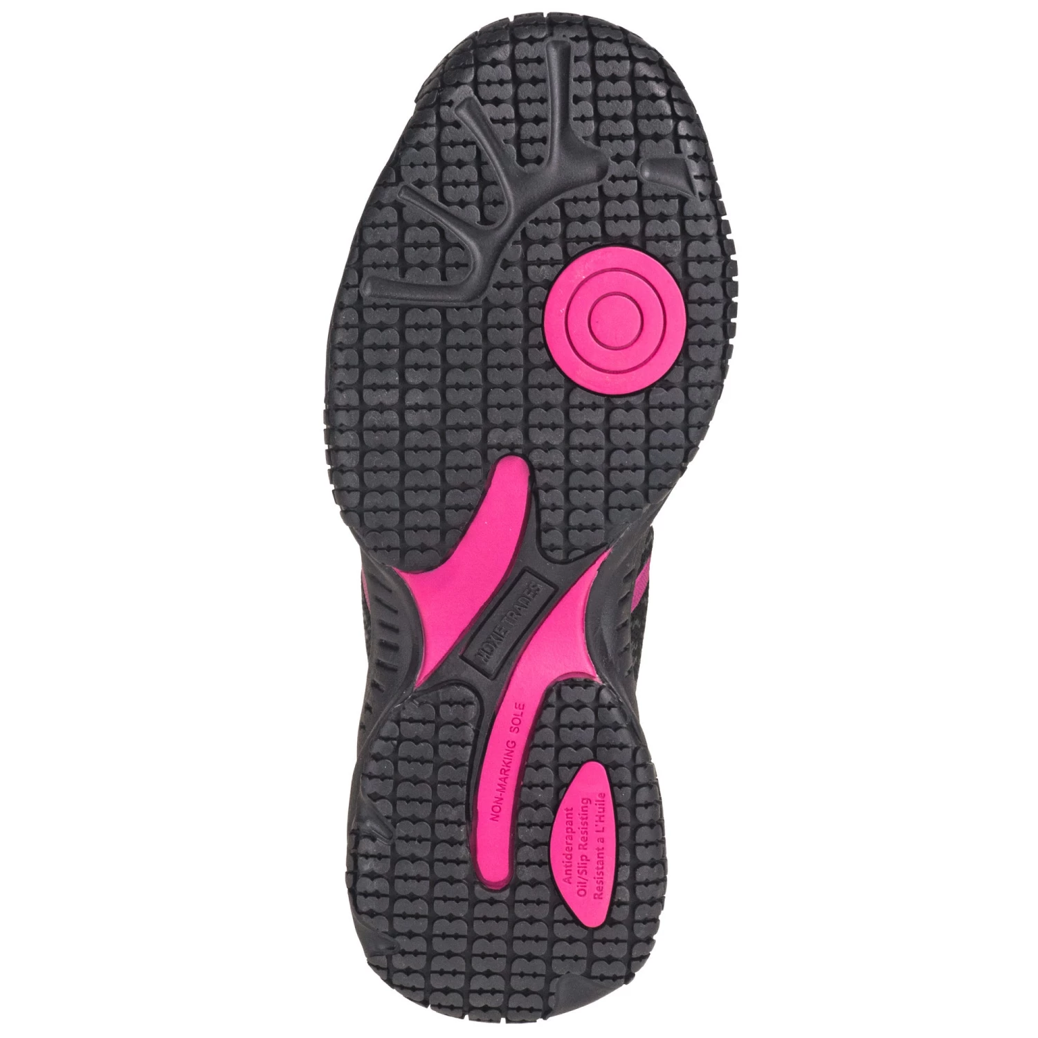 These slip-resistant athletic shoes are made with the Moxie Knit uppers for a breathable, flexible fit for nearly any feet. The cute and stylish black and pink design allow you to bring your girly side to the job, no matter what uniforms may be required. This soft and durable material is tough enough for the job site, while still allowing your feet to move freely as you work. Inside, the PK abrasion-resistant linings reduce friction and chafing as you move for more comfort and less irritation on your feet. The easy slip-on style is super comfortable and incredibly lightweight as well.