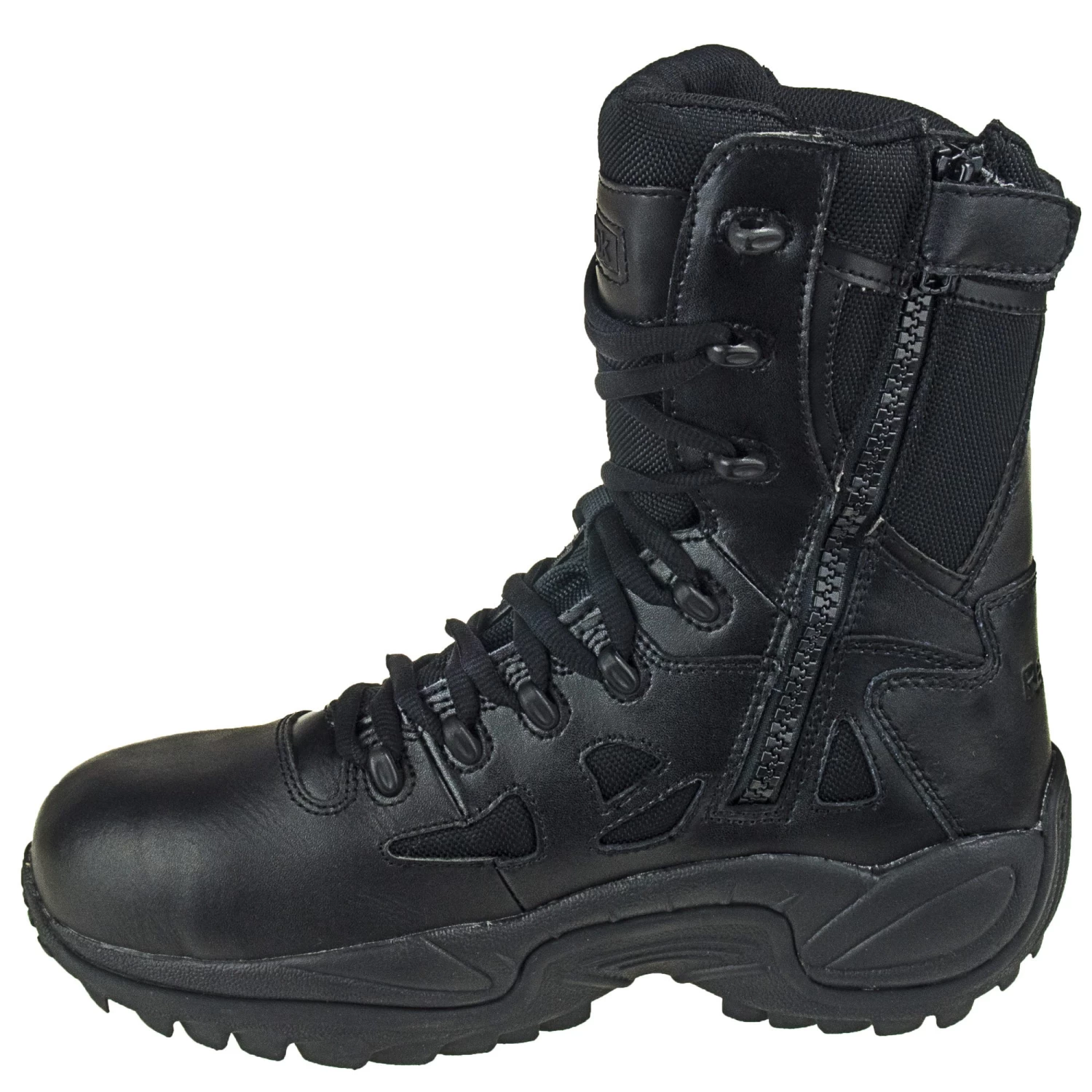 ~Reebok Black RB8874 Rapid Response EH Side Zip Military Composite Toe Men’s Boots work as hard as a military tank yet they’re as soft as a pillow. Get yours today.