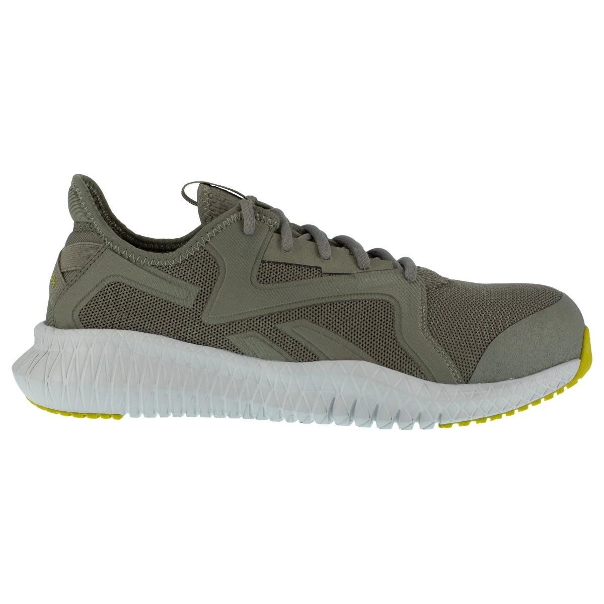 Once you add a pair of these ~Reebok Men’s RB4063 Lime Grey Flexagon 3.0 Composite Toe EH Athletic Work Shoes to your Working Person’s Store online shopping cart, you can breathe a sigh of relief. Why’s that? It’s because this special Flexagon 3.0 athletic footwear has more than meets the eye. For starters, you can expect high-quality safety toe protection from the composite safety toe caps, and the overall design is metal-free to keep things lightweight while still being protective.