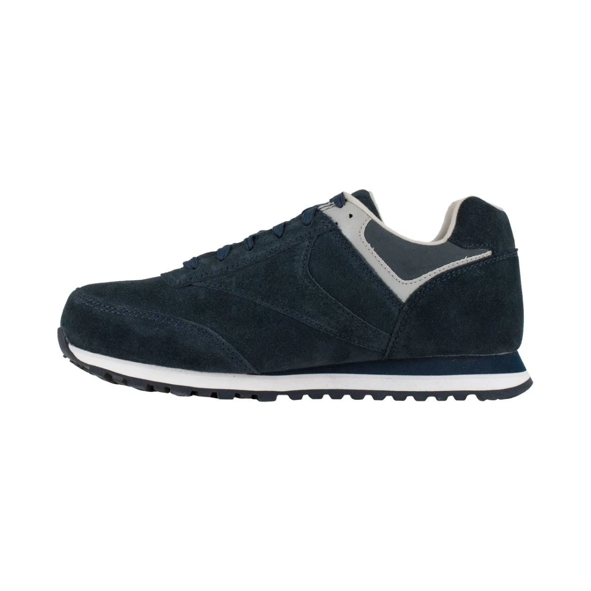 The navy blue uppers of these steel toe shoes are styled with soft suede leather. Suede is known for its touchability and fuzziness, but some people may not know that is it actually a type of leather. No, it isn’t as abrasion resistant as let’s say, full-grain leather. But all leather is naturally durable against wear and tear, so these suede leather work shoes will still hold up great.
