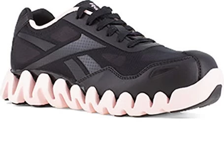 Need to add more energy to your workdays? Get some pep back into your life by wearing the ~Reebok Women’s RB321 Black Pink Composite Toe EH Zig Pulse Athletic Work Shoes. They’re available to order right here at Working Person’s Store for your online shopping convenience! The athletic work shoe design, specifically known as the Zig Pulse Work, is made to return energy back to you with every step you take at work, home, and wherever you go.