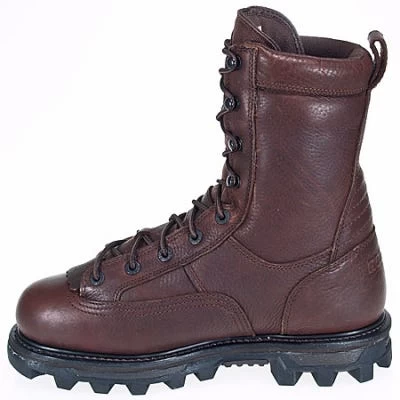 Crafted with rich red brown full-grain leather uppers, these 9-inch Work Boots from Rocky will have you saying grrr all day long (dont worry about the strange looks). The sleek design features a lace-to-toe style for maximum adjustability and a removable lace-in kiltie brush guard. Perforated Air-Port footbeds cushion each step you take for unbeatable comfort. They also promote maximum air circulation so your feet stay fresh.