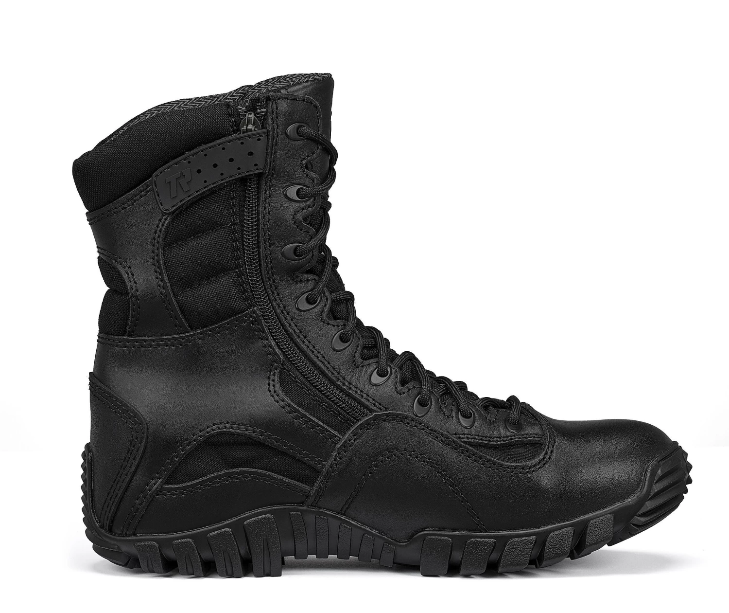 These men’s side-zip boots are super lightweight to help you stay on your toes on a wide variety of terrain. The 100% rubber Exclusive Vibram® “IBEX” outsoles are built to keep you upright, too, as their tread pattern is specifically created to handle rugged surfaces. A low profile sole reduces the overall weight of the waterproof duty boots, and this improves your mobility as well. Sharp angled lugs and defined heels maximize traction while rappelling bars on the outsoles extend the life of the men’s work footwear. Your workdays aren’t always easy, so get the Tactical Research Khyber design that’s constructed for hardworking people like you.