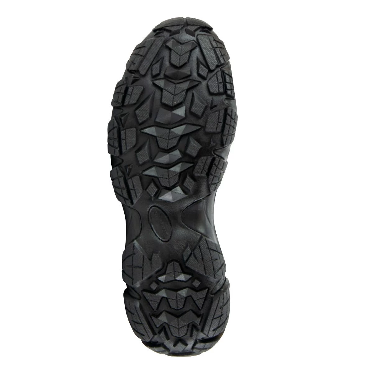 While the exterior is black and grey, the interiors have a secret of their own. Removable Shock Zone polyurethane footbeds are hidden within the composite toe pathogen-resistant boots, and they give your feet awesome cushioning all day. Lightweight composite shanks support your arches to help reduce foot fatigue, and a flexible cement construction bonds the leather and mesh uppers to the Crosstrex 360 outsoles.