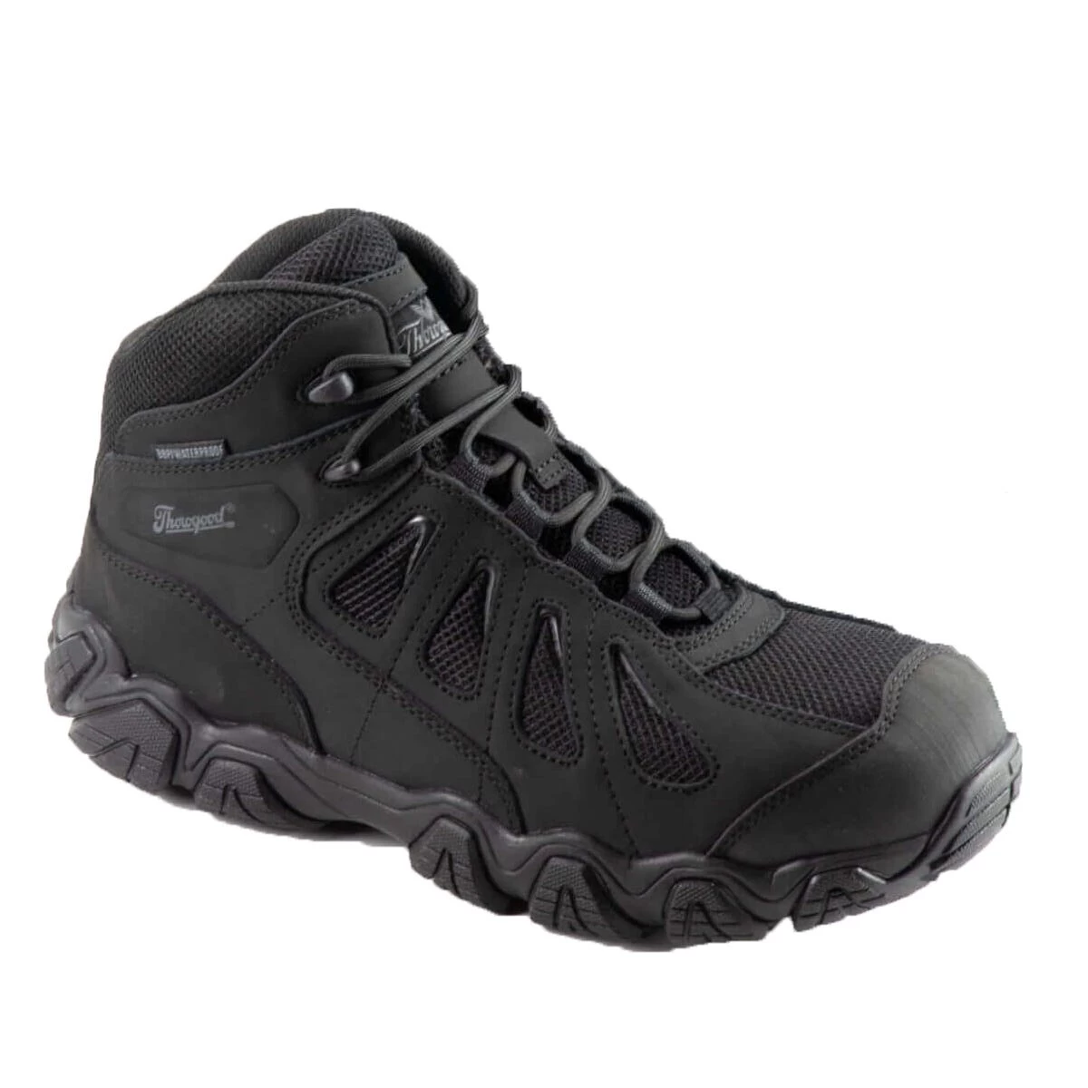 Defend your feet – they deserve the best safety toe coverage you can find. Order these Thorogood Men’s 804-6494 Black Crosstrex Composite Toe Hiker Work Boots today from Working Person’s Store to acquire a top-notch men’s hiking footwear design that has waterproofing, composite safety toe protection, slip resistance, bloodborne pathogen resistance, and admirable comfort features.