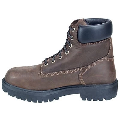 Full-grain brown leather uppers give these soft toe boots the necessary durability and long wear needed for challenging working conditions- indoors and out. The premium, oiled leather is completely waterproof to keep you dry and protected even in nasty weather. The leather is also seam-sealed for increased durability and dry feet. These brown boots were made using direct-inject construction for durability.