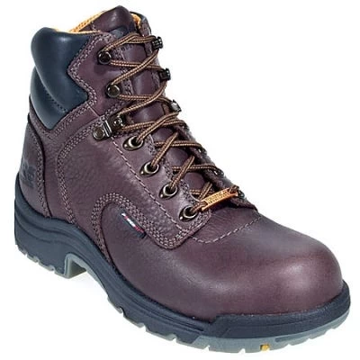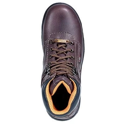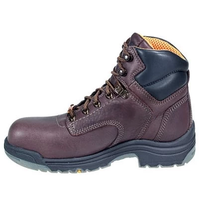These alloy toe EH boots are made with dark brown leather in natural full-grain looks great, and it’s built for breathable comfort for the gal on the go. The waterproof leather and water-resistant membrane keeps moisture where it belongs – outside of your safety toe shoes. Timberland’s TiTAN last construction is specially designed for a superior fit and long-wearing comfort. This is one of Timberland’s lightest TiTAN boots, and this pair features contoured open-cell polyurethane footbeds with Outlast® Adaptive Comfort® technology for breathable comfort and drier feet. Nylon diffusion shanks add torsional rigidity to your steps to give your arches the necessary reinforcement from underneath.