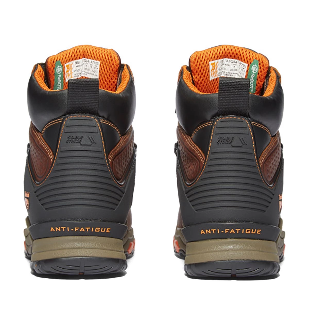 The rugged leather uppers are of premium quality, and they’re waterproof, too. Timberland PRO also added waterproof membranes to lock out water even more. Powered by CarbonShield™ technology, the composite safety toes are ready to guard your feet. Timberland PRO® rubber outsoles on these men’s 6-inch work boots offer superior traction, and these rugged outsoles are slip-resistant, oil-resistant, and heat-resistant up to 572 degrees Fahrenheit (300 degrees Celsius) using EN/ISO 20344:2004. So not only will you be guarded from above (from dropped tools, rocks, etc.), but your feet will also have an excellent barrier of protection from below.