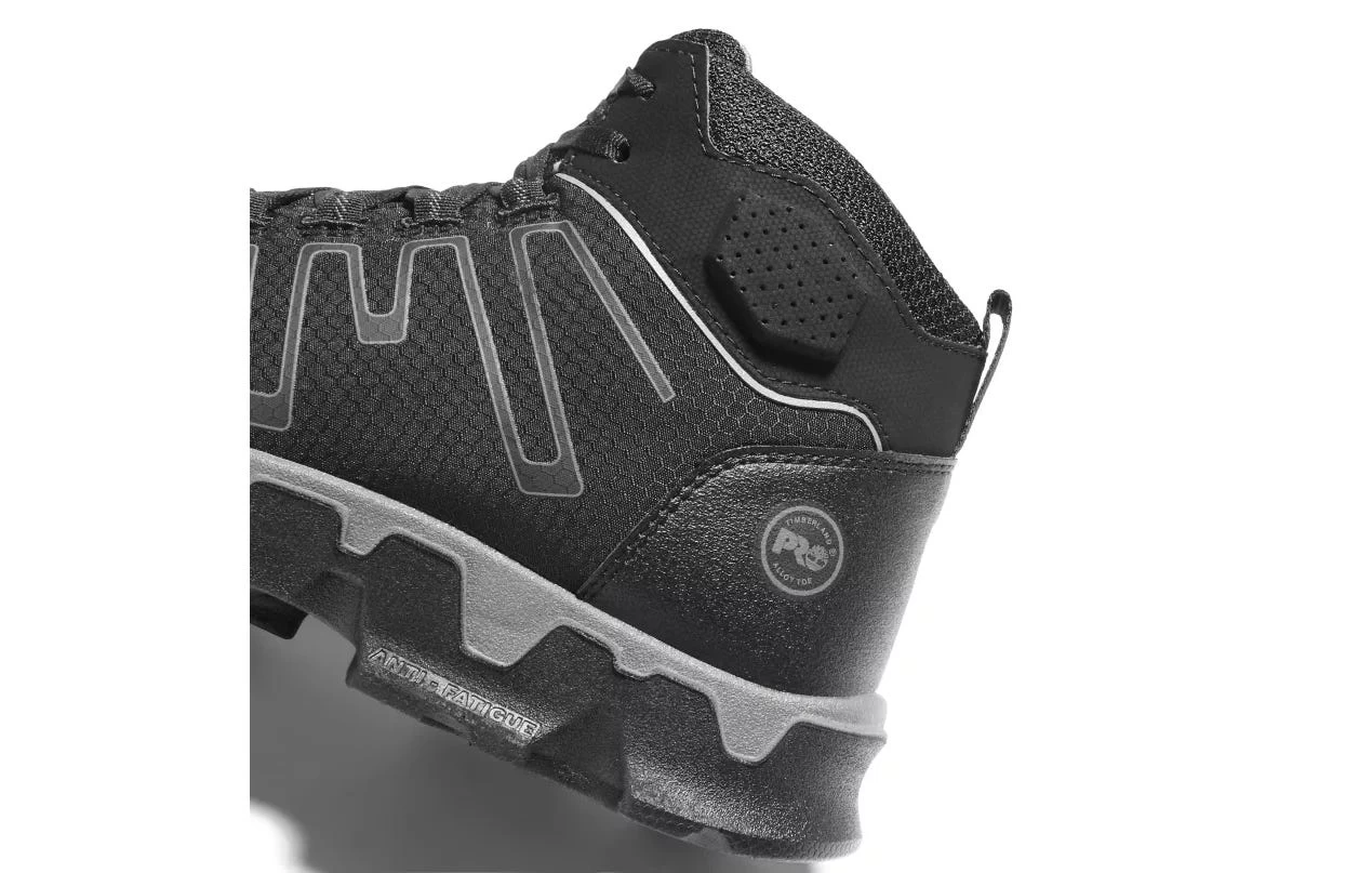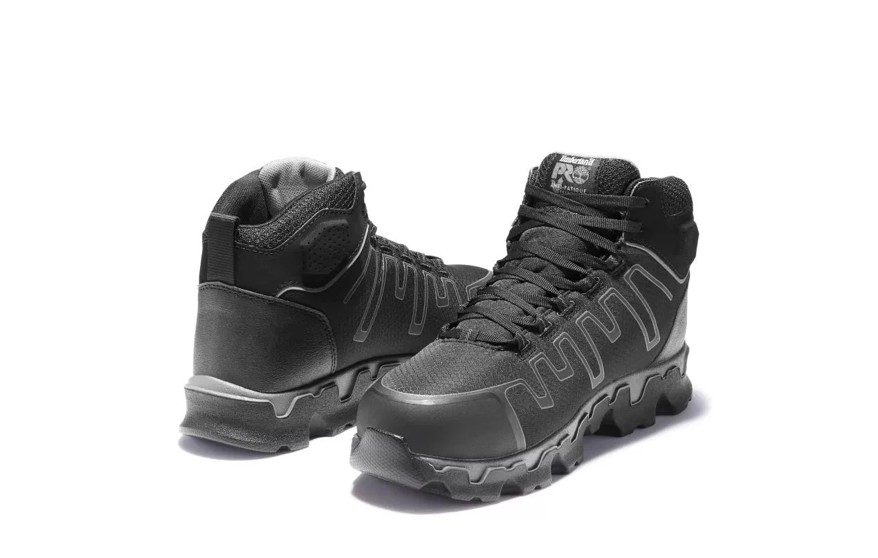 If your men’s athletic footwear can handle the heat, they can stay in the workplace. Once you’re wearing these heat-resistant ~Timberland Pro Men’s A1JYQ Black Grey PowerTrain Mid Alloy Toe Athletic Work Shoes, you’ll worry less about the temperatures on the outsoles of the design and more about the tasks at hand.